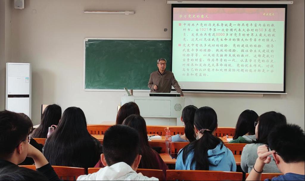 课上,平海教授从学习党史的意义、党的历史分期、中国共产党的成立和中国共产党成立的伟大意义四个方面给同学们进行讲解。