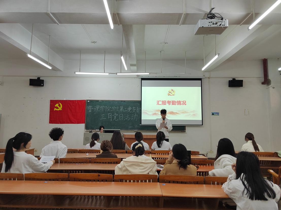 首先,主持人简单介绍了此次三月党日活动的流程,接着由太阳成集团tyc7111学生第二党支部林卓栋同志汇报本次大会考勤情况。