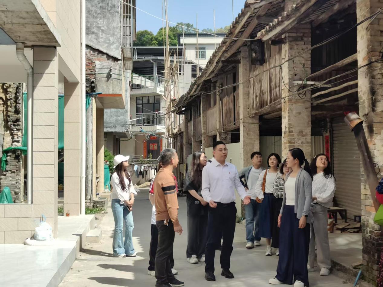 在二龙村村委委员郑朴琴的带领下,调研组实地考察了见证村落百年沧桑的旗楼与炮楼。斑驳的青砖、雕花的梁柱无声诉说着文化的历史脉络,为后续打造特色党建品牌提供了文化基因。“这些建筑不仅是历史的载体,更是未来特色党建品牌融合的宝贵资源”,袁书记在参观中强调。