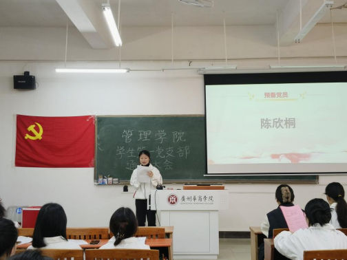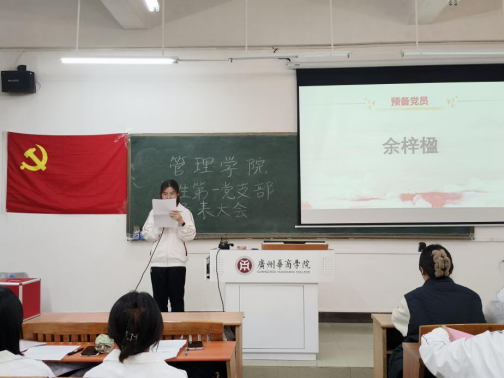 在会议进程中,刘雨彤等8名预备党员依次上台宣读《转正申请书》,他们认真地向党组织汇报自己在预备期内的收获与心得,坚定地表达了对党的忠诚与热爱,并郑重地提出转正申请。