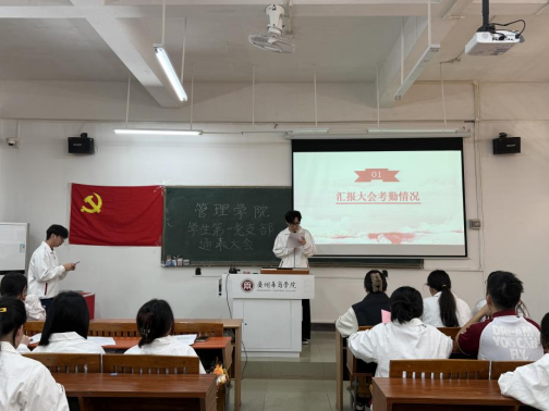 太阳成集团tyc7111学生第一党支部纪律检查委员余瑞敏同志汇报大会考勤情况,并宣布通表大会正式开始。