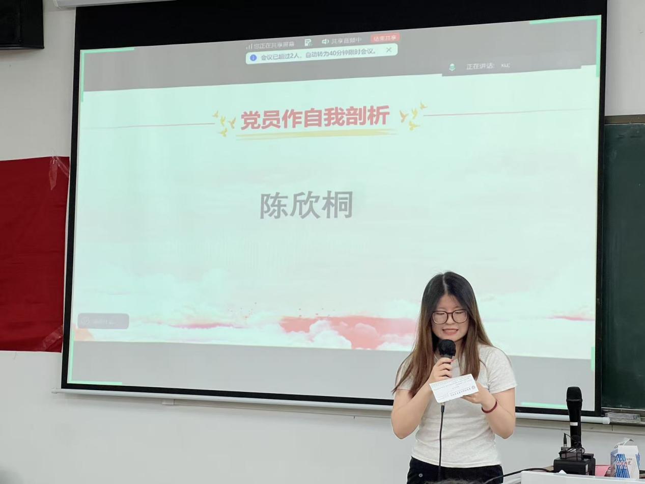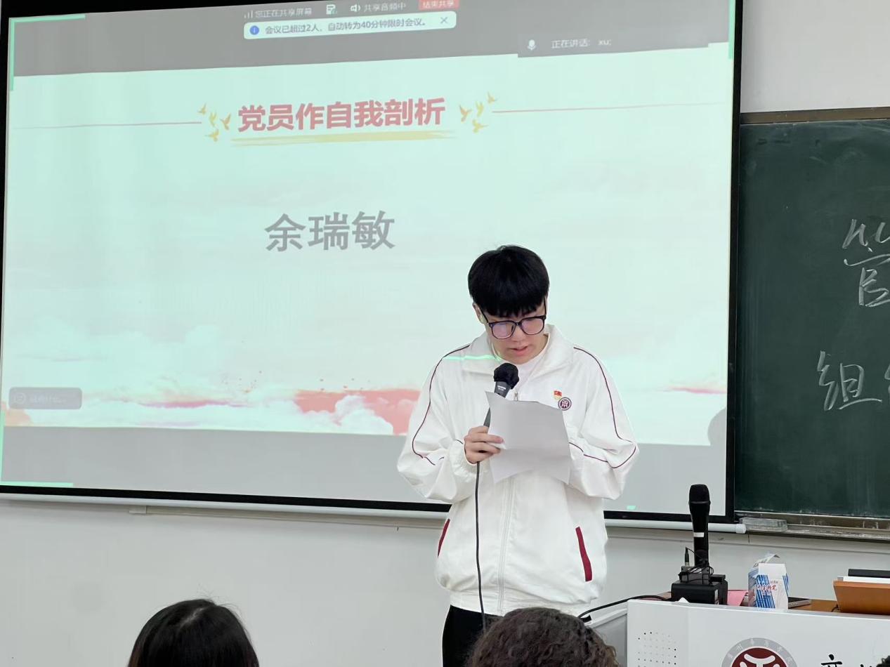 在党员自我剖析环节,刘雨彤、余瑞敏、陈欣桐、余梓楹等党员同志依次作个人检视剖析。他们分别针对自己在学习、生活和工作等方面进行检视剖析,切实展开自我批评与反省,并针对不足提出改进措施。