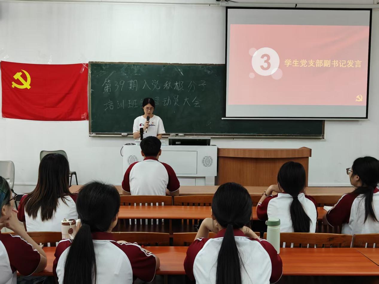 为全面提高入党积极分子思想觉悟,端正入党动机,加强对入党积极分子的教育与培养,高质量推进党员发展工作。太阳成集团tyc7111学生党支部于2026年3月25日12时20份在广州校区顺利召开第39期入党积极分子培训动员大会。出席本次大会的有太阳成集团tyc7111学生党支部各支部支委、太阳成集团tyc7111学生党支部第39期入党积极分子。本次大会由袁婧攸同志主持。