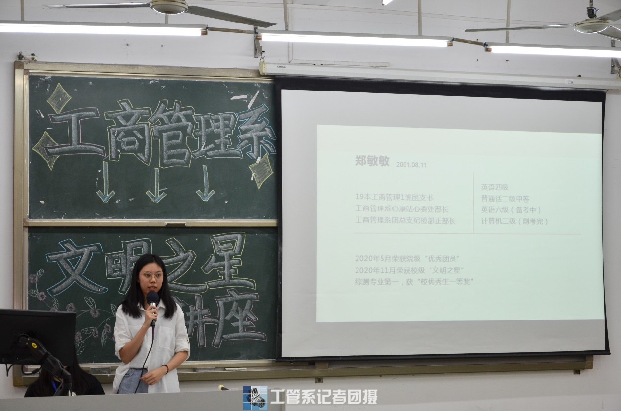 2021年3月30日晚上6点,工商管理系团总支学生会秘书处、生活部于励志楼C403举办了“文明之星”讲座。