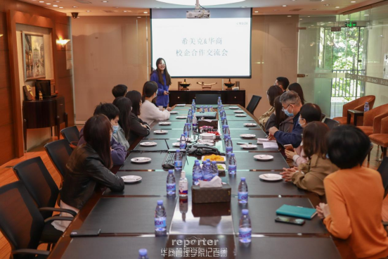 参观完一楼的办公室后,希美克泉经理带领秦院长一行人前往二楼会议室。紧接着,交流会正式开始,工作人员在大屏幕上播放了希美克企业的宣传片,片中介绍了希美克企业的发展史,展示了公司产品,公司福利等。不仅如此,在此工作的华商管院毕业生也积极地介绍公司情况。泉经理表示,希望有更多华商管院的学生加入希美克。
