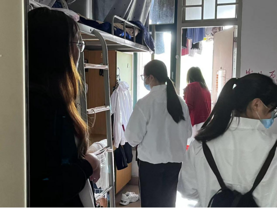 在检查完后,老师向学生强调要注意个人卫生,做好疫情防控,叮嘱学生一定要勤通风、勤打扫,做好宿舍内务和疫情防护工作,防止疾病蔓延,同时与学生亲切交流,了解学生在生活上存在的问题,希望学生加强宿舍文化建设,增加彼此之间的了解,深化相互的友谊,融洽校园氛围。