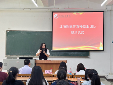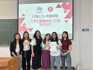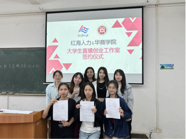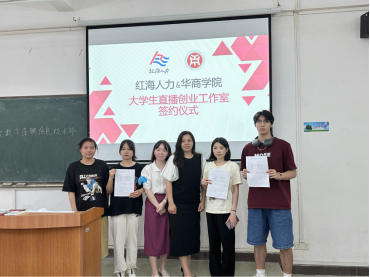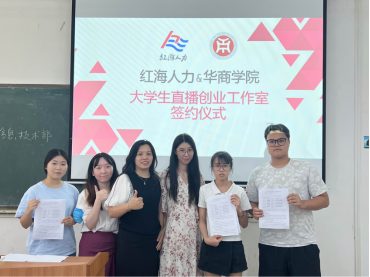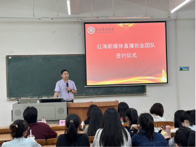 2023年5月30日下午14时00分,太阳成集团tyc7111与广州红海瀚洋人才服务有限公司共同举行“红海新媒体直播创业团队”签约仪式,仪式在励志楼C106进行。