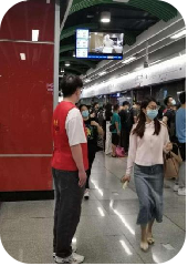 到达地铁站后,同学们进行了有序分工,并迅速投身到工作岗位中。积极开展文明引导、爱心帮扶、信息咨询等志愿服务,用实际行动为乘客营造一个安全畅通、文明有序、和谐礼让的乘车环境,用热心服务温暖了乘客的出行路、回家路。在服务过程中,志愿者们面带微笑、用心用情服务,在站台、换乘指引处为乘客提供指引,耐心回答乘客关于购票、换乘、路线等问题,在客流高峰时协助疏导客流,以专业的姿态和饱满的服务热情服务乘客,展现了华商青年学生志愿者的风采。