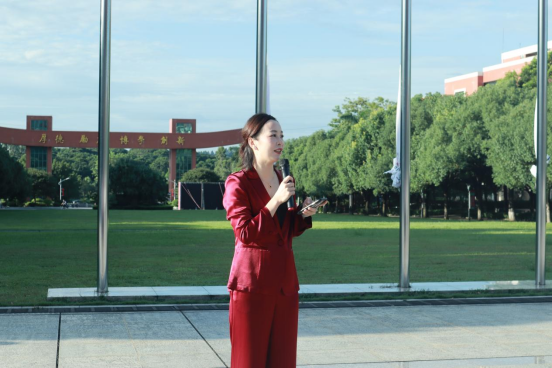 随后是教师代表郑丽芬主任发言,她表达了对见到新生们的喜悦,会秉持以学生发展为中心,也饱含期待说希望同学们不忘初心,勇追梦想,以及对新生加入华商大家庭的欢迎。
