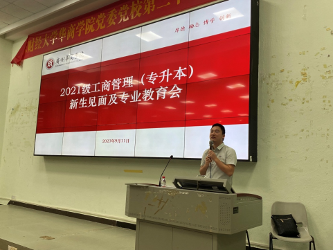 2023年9月11日18:20分,21级工商管理(专升本)新生见面及专业教育会分别在励志楼B207和励志楼B307同时举行。会议由工商管理系主任吴彬彬老师和工商管理系副主任索文灏老师主讲,周永平老师、袁方方老师和李丹琪老师也莅临现场参与活动。