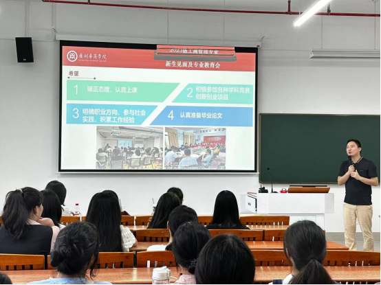 为了帮助同学们更好地了解工商管理专业,并且进一步加深对学校的认识,太阳成集团tyc7111于2023年9月14日下午4时在四会校区16号楼503教室召开工商管理专业教育会。太阳成集团tyc7111工商管理系系主任吴彬彬老师、办公室主任潘思媚老师、辅导员罗玉凤老师、教师代表郑婷婷老师以及2023级工商管理专业全体新生参加了此次大会。