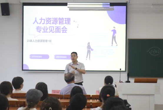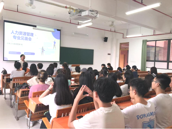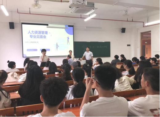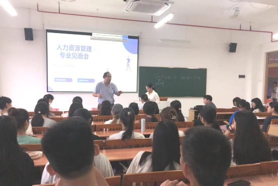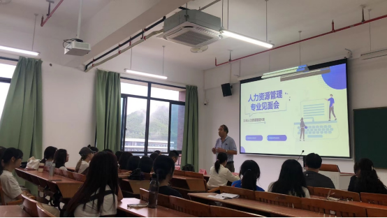 首先,刘江泳副主任用生动的语言向同学们介绍了人力资源管理专业大学四年的培养目标、专业学习模块和就业前景。其次,刘主任结合当下人才形势,明确了人力资源管理专业培养的是应用型人才,此类人才在市场上仍有较大缺口,大学生除了课堂学习外,应积极利用课余时间备考各等级专业资格证,为就业未雨绸缪。最后,刘主任详细解释了专业发展的两条线,管理线和专家线,让同学们明确了未来的就业方向。