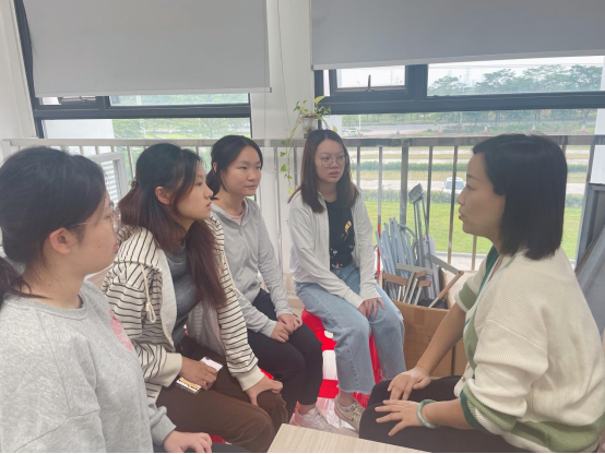 2023年10月9日,太阳成集团tyc7111市场学系主任张丽娟老师携增城校区大三4名优秀学生前往四会校区举行了一场亲切交流活动。此次活动旨在通过与四会校区大一新生、大二学生进行亲切交流,了解他们在学习、工作和生活中所面临的困惑,同时也了解他们的诉求,增强两校区间师生之间的交流和互动。