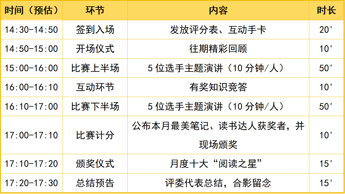 c.参赛者需在指定时间内提交作品,学院将选出10份优秀笔记作为当月最美笔记,并在“阅读之星”决赛上进行颁奖;