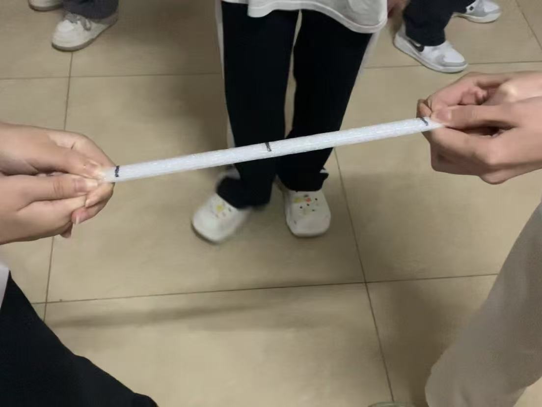 首先进行的是主题为“言端彰礼序,力竞显豪情”的团生活动环节一。工作人员为每小组派出的参赛代表发放了统一规格的泡沫条。选手双手紧紧握住泡沫条起始位置,静静等待指令下达。选手在听到指令后,从泡沫条起始位置开始扯动,直至泡沫条扯断。随后,工作人员严格按照规则,比对双方扯下泡沫条的长度,以此判定胜负,泡沫条长的一方获胜晋级,短的一方则被淘汰。比赛以淘汰赛形式推进,逐轮进行。最终,统计每位玩家的总得分。第一名小组加8分,第二名小组加7分,以此类推,最后一名小组不加分。