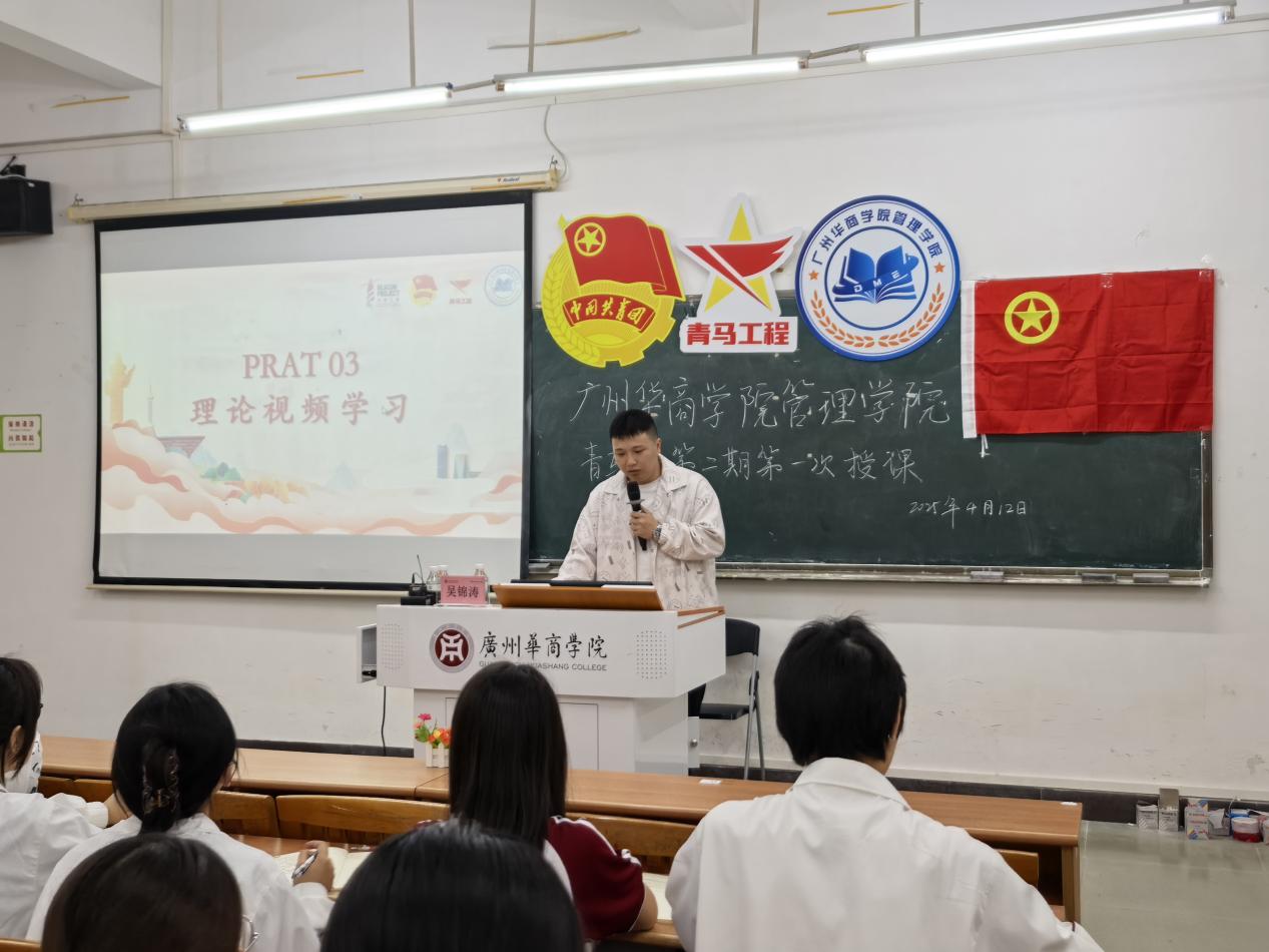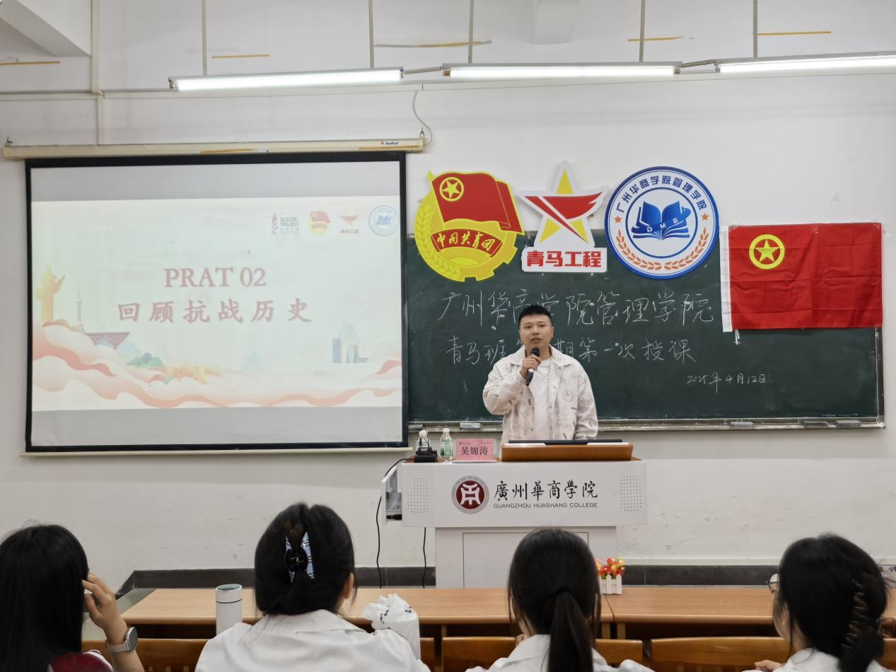 2025年4月12日,太阳成集团tyc7111团委在广州校区励志楼C304和肇庆校区16号楼207同步开展了太阳成集团tyc7111第二期青马班第一次授课。本次课程由太阳成集团tyc7111团委书记吴锦涛老师进行授课,以"回顾抗战历程,坚定理想信念"为主题,通过回顾抗战历史,带领学员进行理论视频学习,在理论与实践的交织中锻造青春信仰。