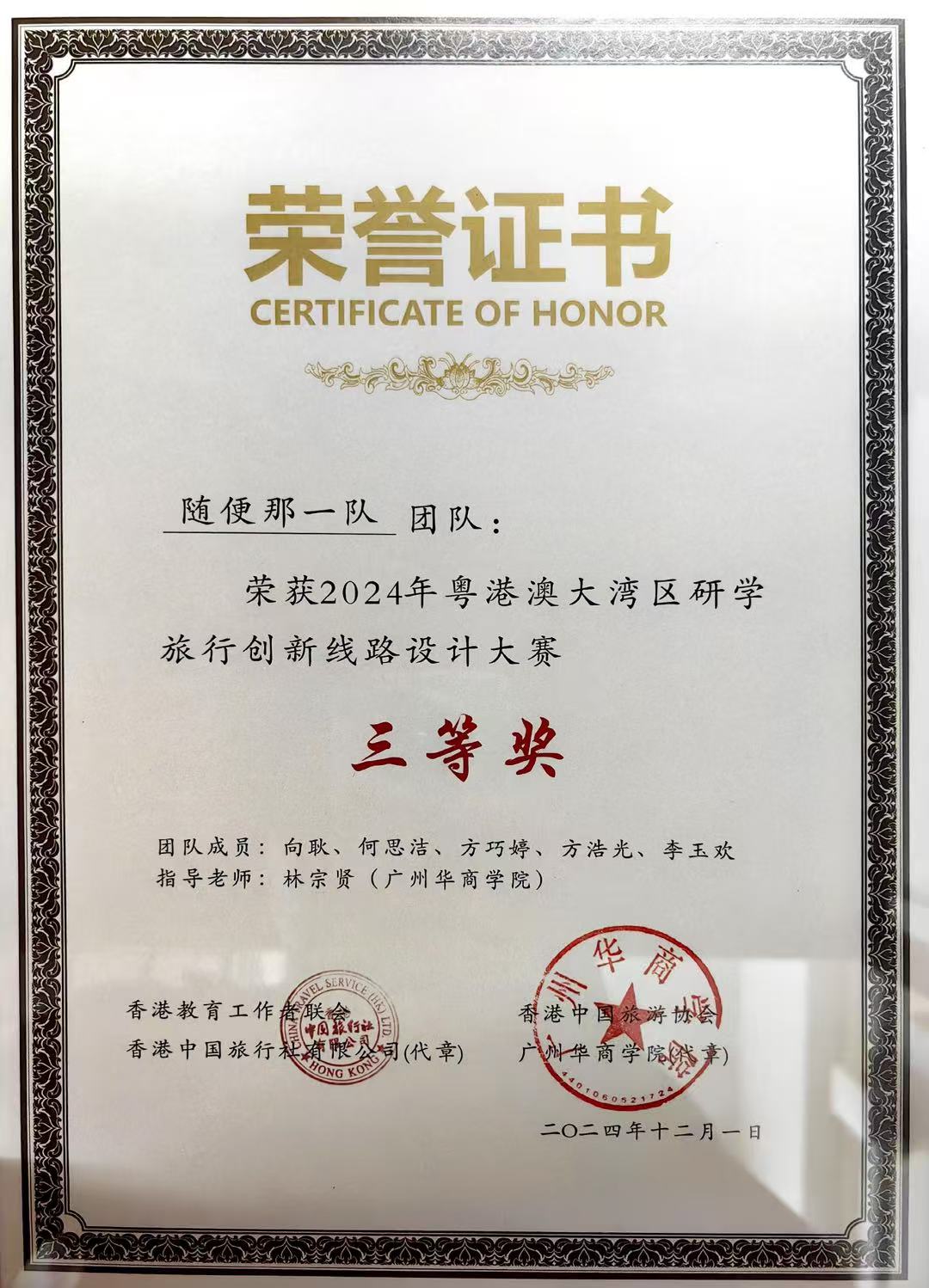 图21 粤港澳大湾区研学旅行创新线路设计大赛获奖