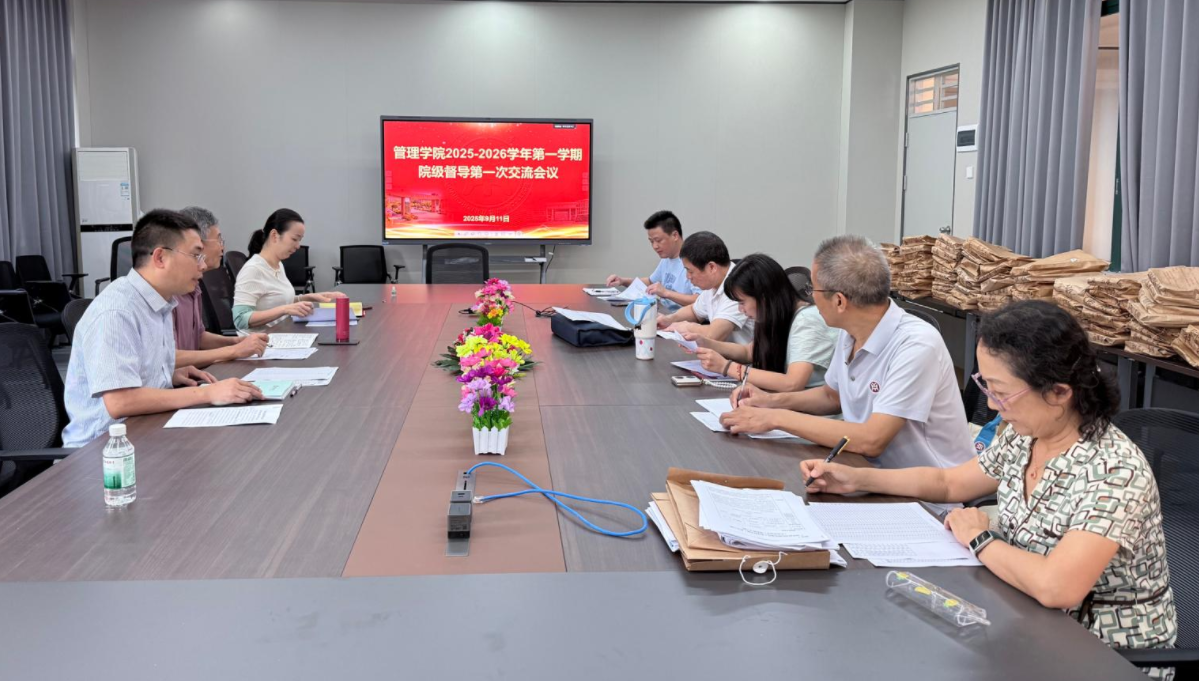 9月11日上午,广州华商太阳成集团tyc7111在创新楼417会议室召开 2025-2026学年第一学期院级督导首次交流会,为新学期教学质量督导工作定方向、明任务。主管教学副院长袁仕海、院长助理郑丽芬,专职督导秦陇一教授,院级督导金明华、陈支武、高环成教授及陈岫副教授,教学秘书梁林海参会。