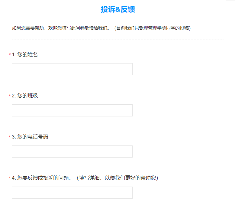 还有哦~我们的信访投诉渠道微信端也在持续运作中,欢迎各位师生投诉反馈!下面是投诉指引,我们再来看看吧~