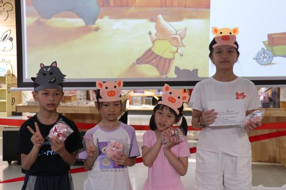 紧接着通过简单的“找不同”热身小游戏,活动正式进入角色扮演环节。志愿者随机挑选儿童分别饰演三只小猪与大灰狼,在情景复刻中理解故事逻辑、锻炼表达能力。在此起彼伏的掌声中,孩子们沉浸式体验让阅读教育从 “单向输入” 转向 “双向互动”。