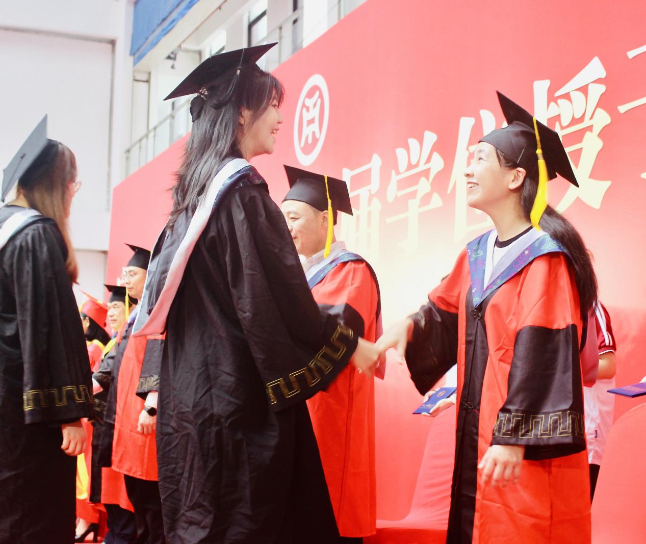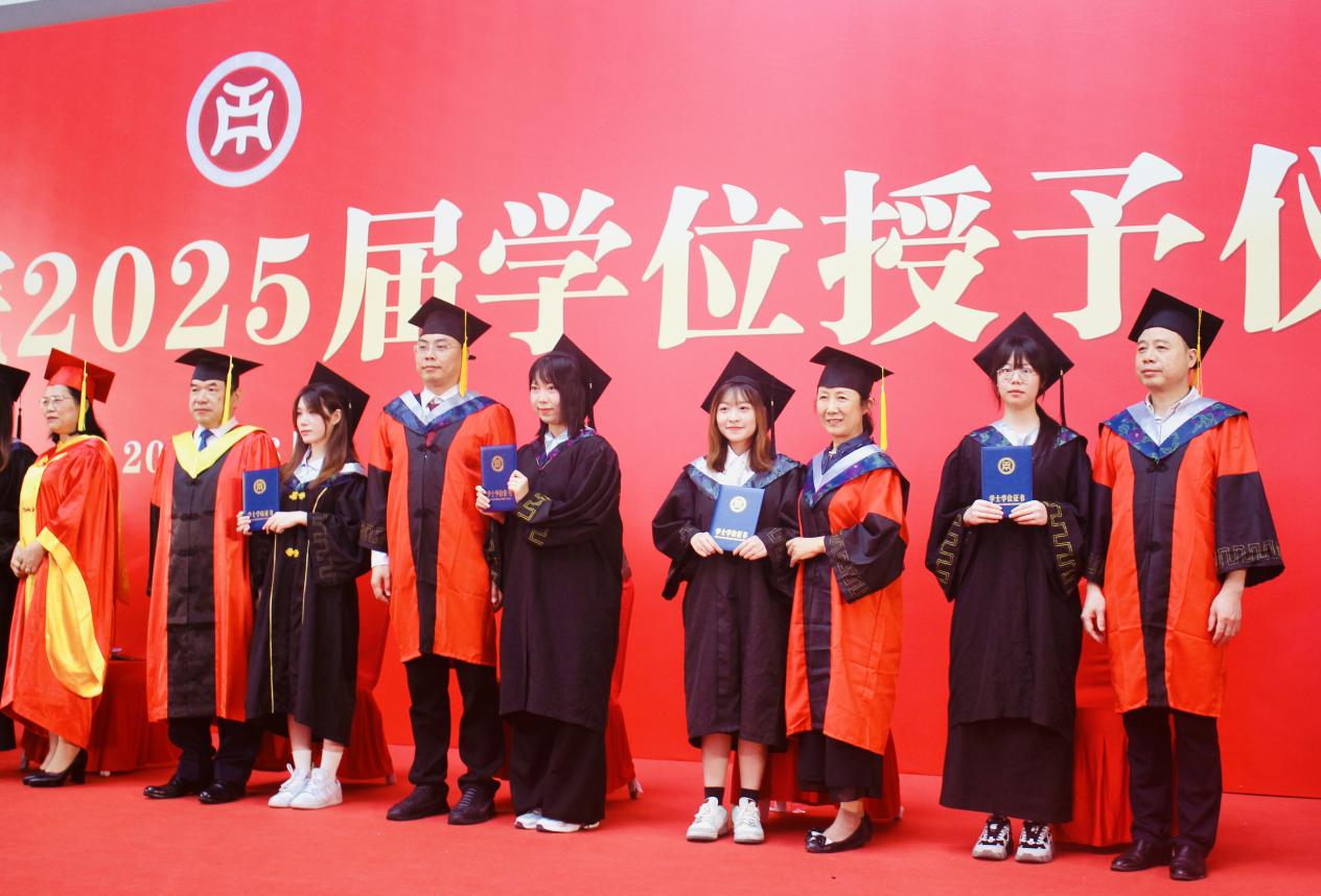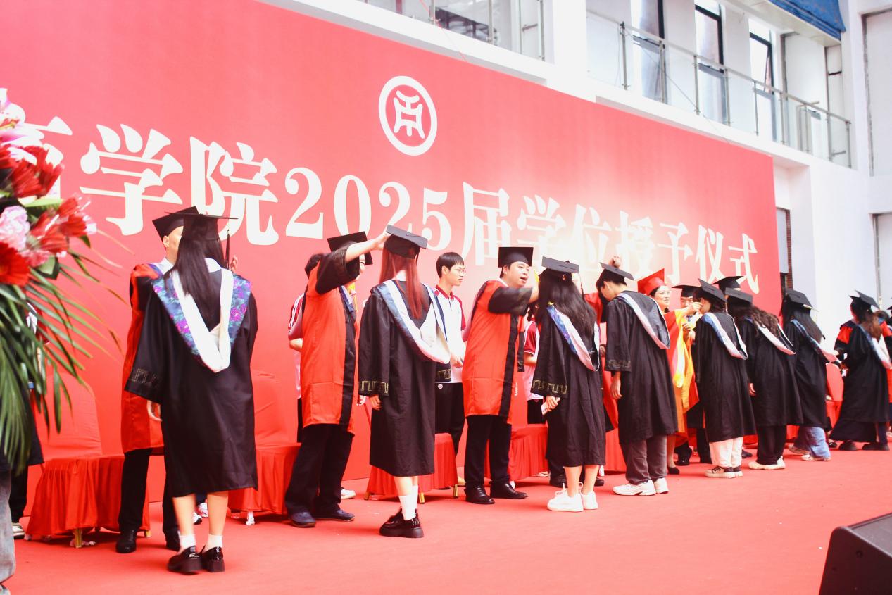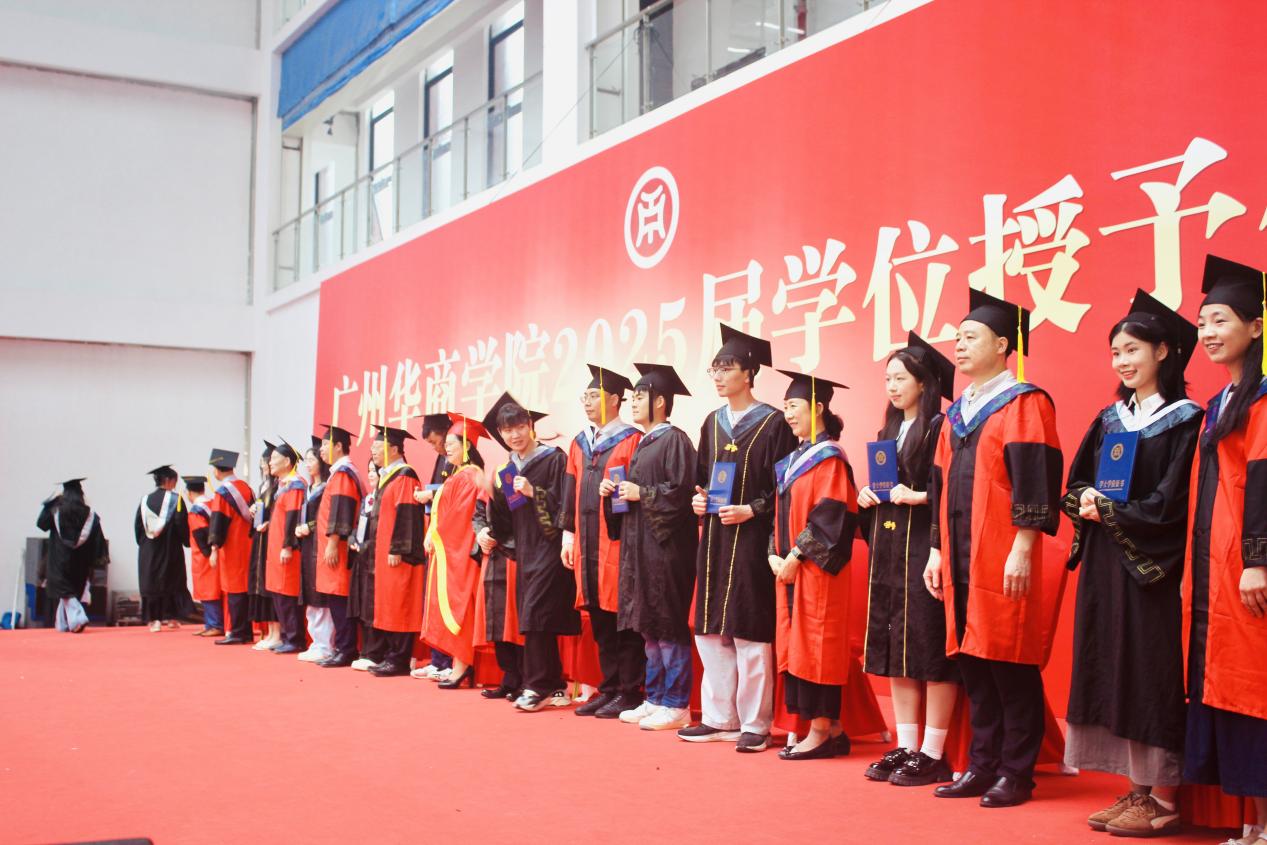 本次大会由太阳成集团tyc7111副院长袁仕海主持,在庄重而热烈的氛围中,广州华商学院党委书记陈玉欢郑重宣读《广州华商学院关于2025年6月普通高等教育本科毕业生学士学位授予的决定》。随着宣读完毕,学位授予仪式正式拉开帷幕。毕业生们怀着激动与期待,有序走上台,接受导师团拨穗礼,这一仪式象征着他们学业的圆满与人生新阶段的开启。随后,他们双手接过承载着多年努力与梦想的学士学位证书。