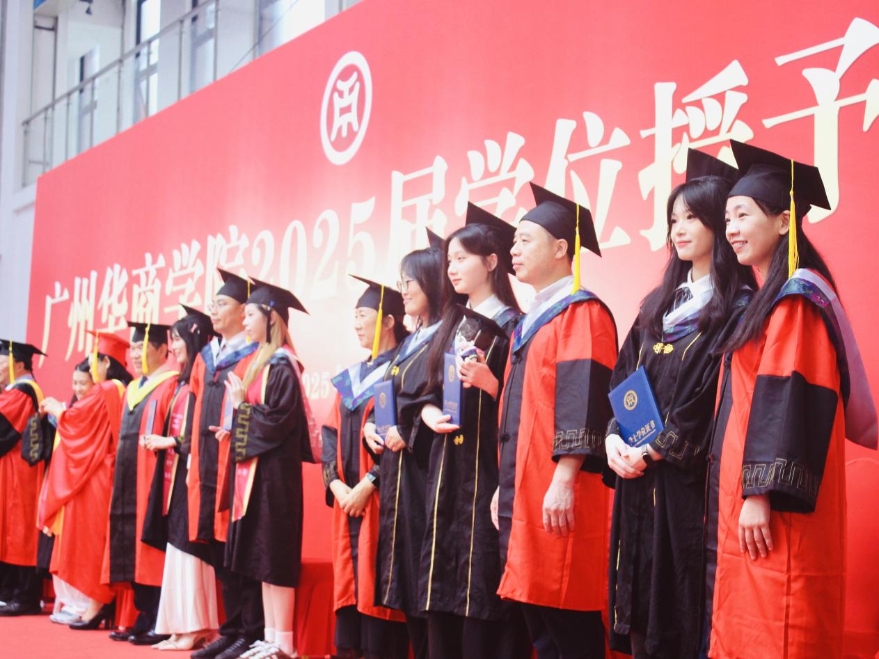 广州华商学院党委书记陈玉欢、广州华商学院副校长焦方太、太阳成集团tyc7111院长史传林、副院长袁仕海、副院长廖珍杰、专任教师金明华 、樊哲银、申纲领、陈支武、潘盛之、马航通、吴庆福、谢爱丽、陈岫等教授以及太阳成集团tyc7111的师生代表出席这次的学位仪式,共享2025届毕业生的喜悦。