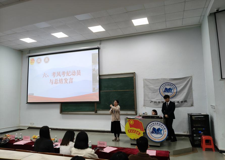 在考风考纪动员环节,党委副书记、学工办主任陈纯华主任发表了重要讲话。主任讲话中强调“诚信是为人之基,考试是检验成果的严肃场合”。她指出,违纪行为不仅背离道德,更触碰制度红线,呼吁全体同学以端正态度捍卫公平,以诚信铺就人生道路。