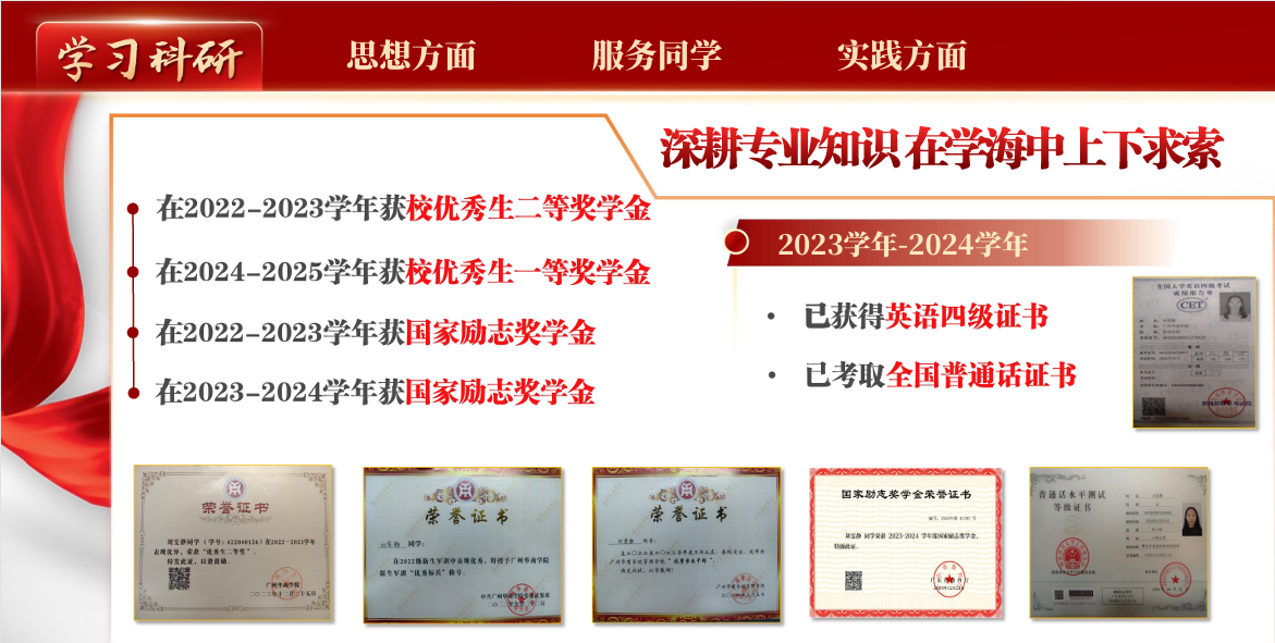 深耕专业领域,学年综合测评排名专业第二。