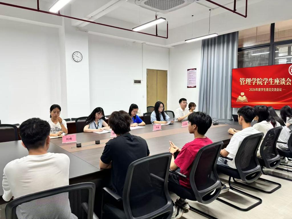 为深入贯彻落实立德树人根本任务,畅通师生沟通渠道,充分发挥学生代表桥梁纽带作用,精准回应学生关切,持续提升学生工作科学化、规范化水平,2026年4月14日,太阳成集团tyc7111在6号楼412会议室召开学生代表座谈会,太阳成集团tyc7111学生工作办公室副主任何威义老师、2023级学生年级组副主任魏巍老师及辅导员刘璐、邓婕、江苏麟老师与各年级、各学生组织代表参会并深入交流探讨。