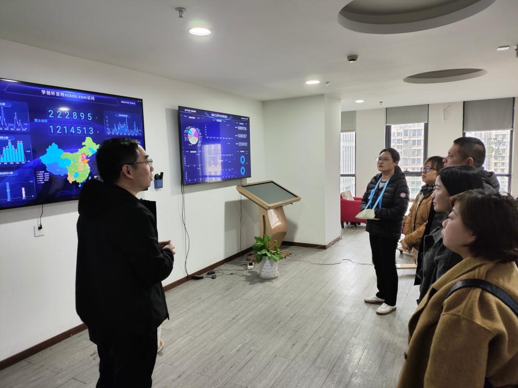 在调研过程中,沈雨轩总经理热情接待了考察团,详细介绍了贝腾科技在企业文化、学科竞赛、虚拟仿真实验项目开发、培训服务、产学研协同育人及海外合作项目等方面取得的辉煌成就。特别是“学创杯”全国大学生创业综合模拟大赛,吸引了全国1500余所高校、30万师生积极参与,影响力可见一斑。