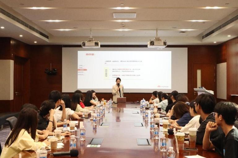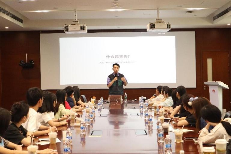 参观基地后,新苗班学员移步至华为欧洲小镇K区会议室,开展企业授课的第二次学习。华为广东终端广州区域零售经理王庆与华为广东终端广州区域人力资源经理江雪分别讲授了《零售行业洞察》和《简历制作与面试技巧进阶》课程,现场互动热烈,学员们收获颇丰。